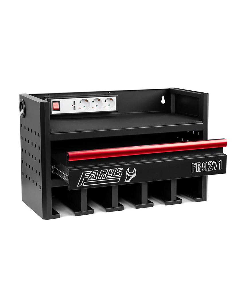 Ontdek de ultieme oplossing voor een georganiseerde en efficiënte werkplaats: de GZO Tools Accugereedschap Organizer met stroomaansluiting. Dit hoogwaardige wandrek biedt u de perfecte manier om uw elektrische gereedschappen op te bergen en direct op te laden.
