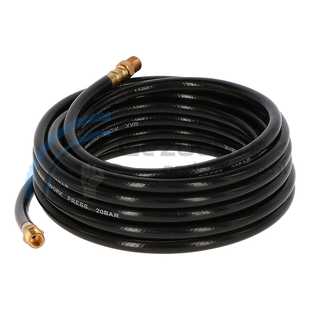 De luchtslang heeft een binnendiameter van 6mm en kan max 20bar druk aan. De uiteinden zijn voorzien van 1/4″ schroefdraad voor het gemakkelijk aansluiten van accessoires.